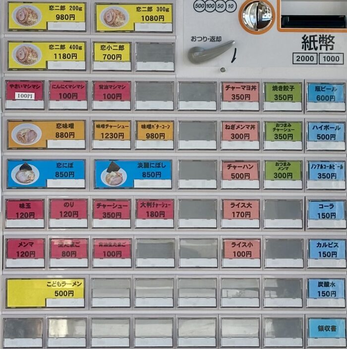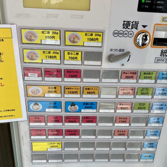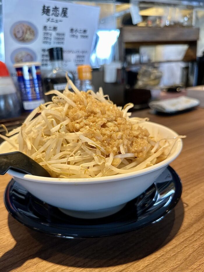 オーダーはもちろん店の推し、のモヤシまみれ【恋二郎(300g)全マシヤサイマシマシ】税込総額1,180円。