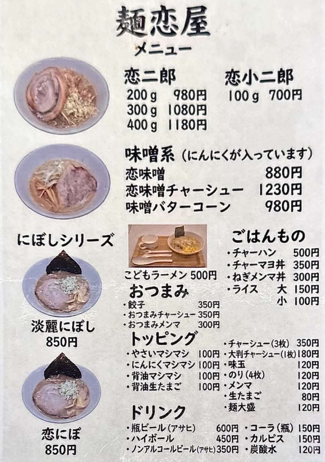 | 備考 | 2025.8.29 前身店「麺屋颯爽 十和田店」オープン 2026.3.29 「麺屋颯爽 十和田店」閉店 2026.4.3-5 新店「麺恋屋」としてリニューアルプレオープン 2026.4.6 本オープン |