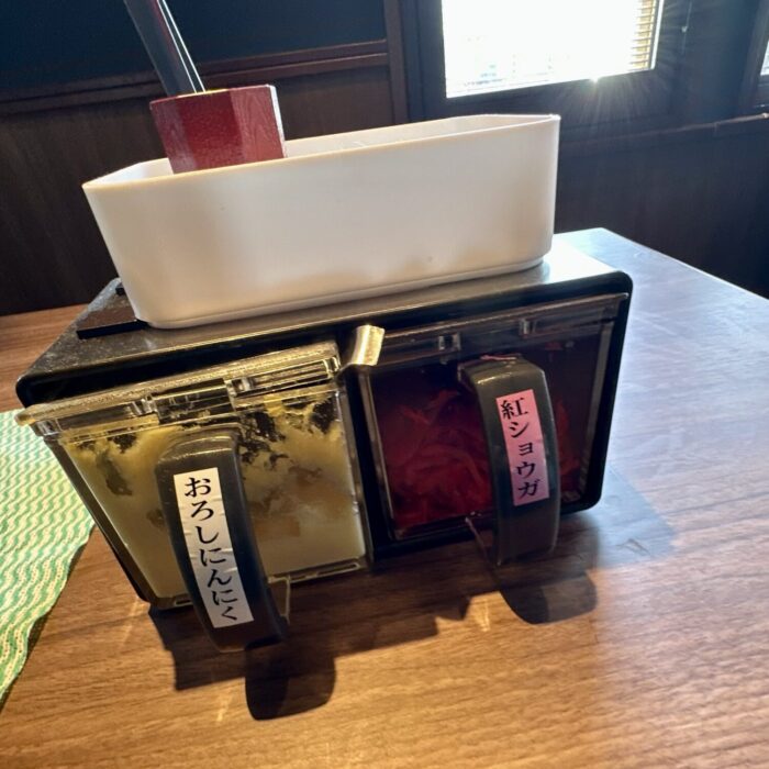 それでも卓上調味料はさすがに刷新、あの頃のフルーツ酢はもうどこにもないのです(;´^;ิ益;^ิ;.`)