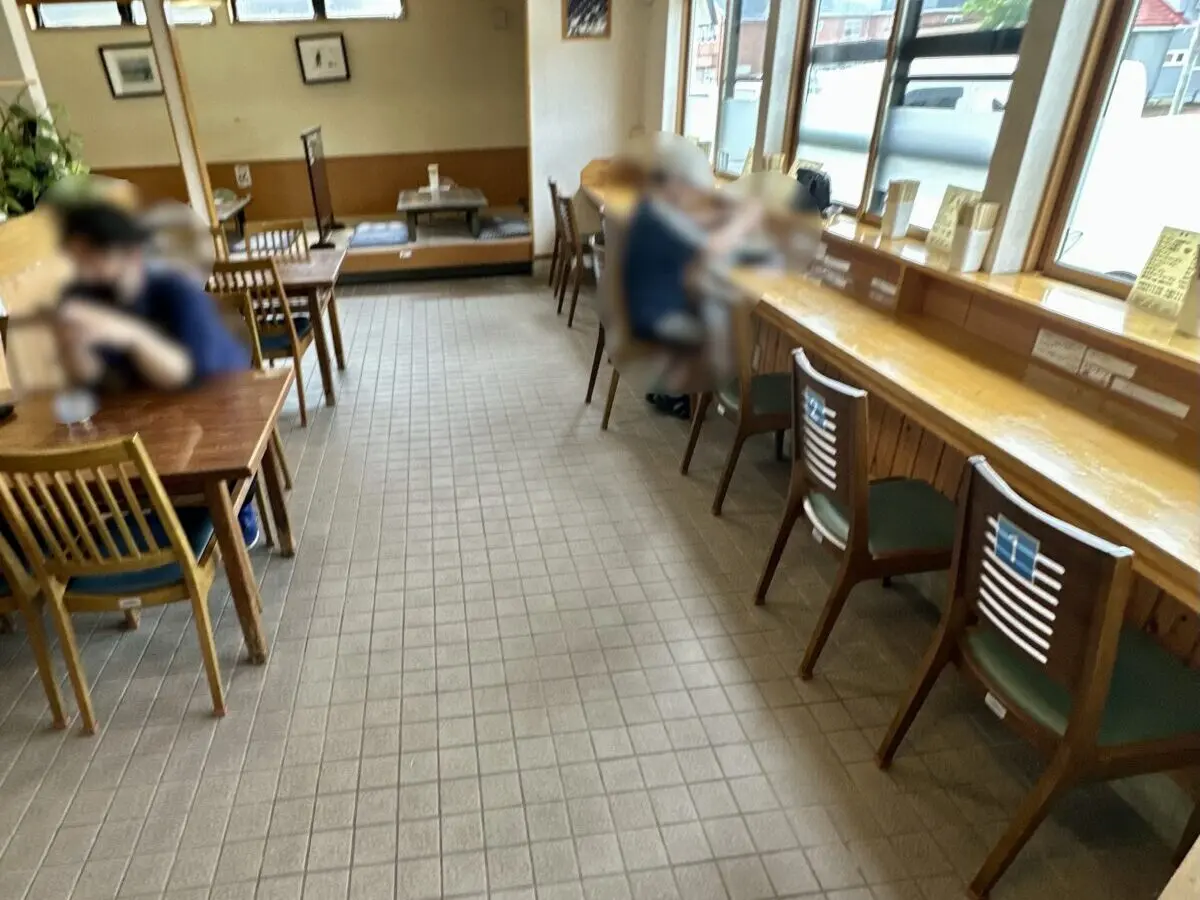 窓側カウンター席6席、テーブル2卓