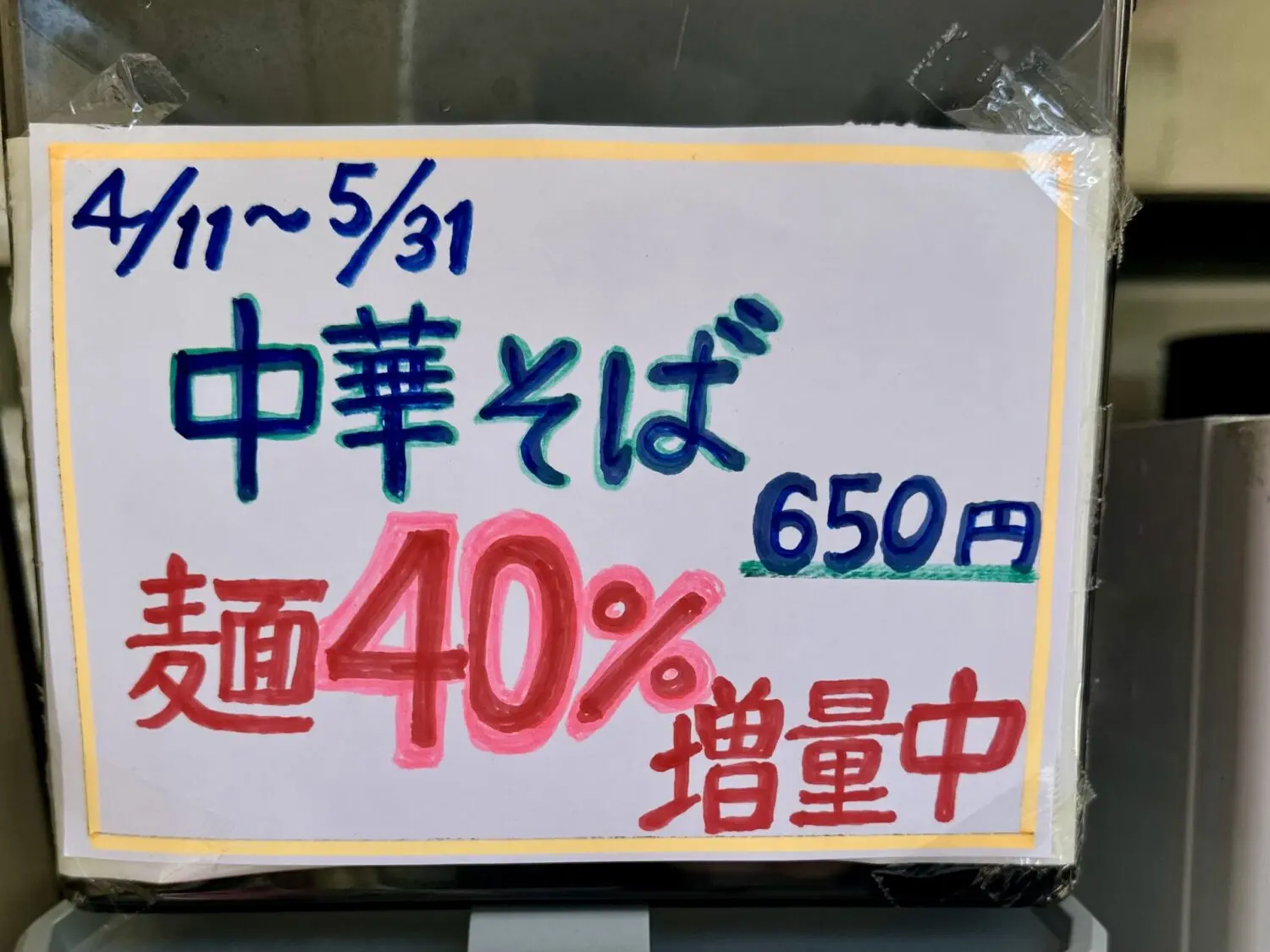 何にも聞かれなかったとこ見ると、「今なら麺量40%増量中」キャンペーンは有無を言わさず実行されるっぽい