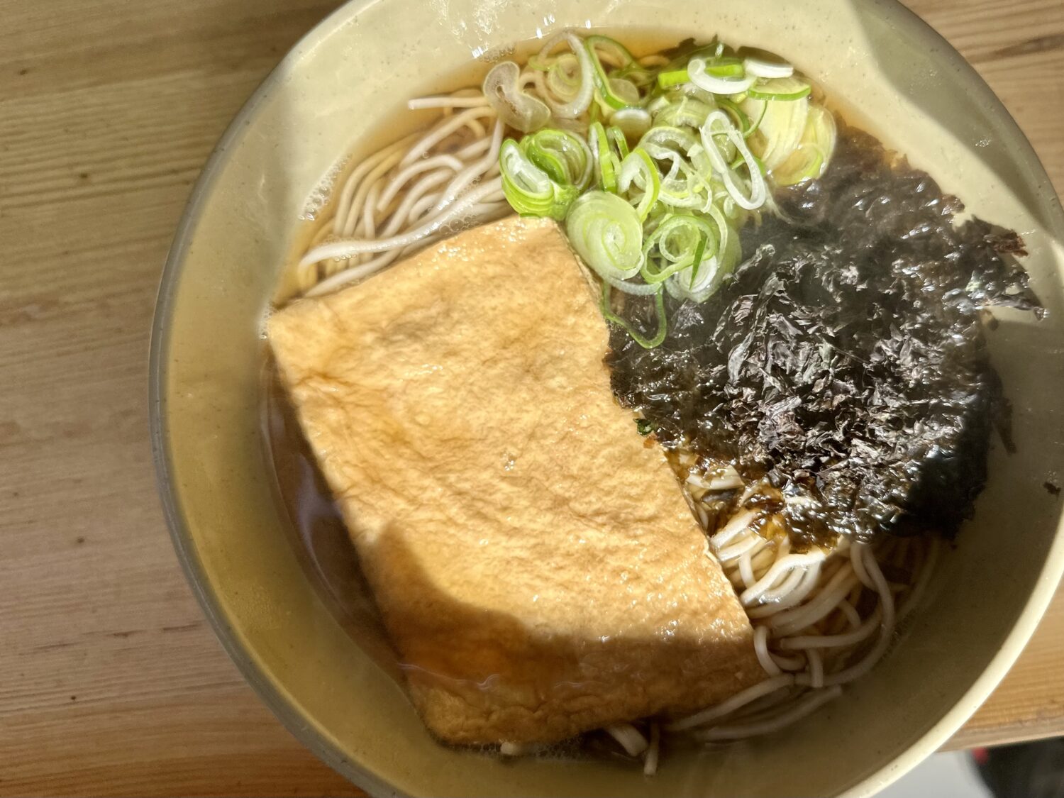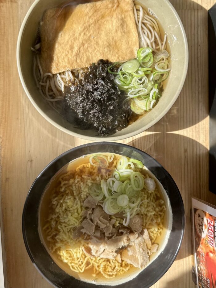 ちなみにこちらオツレサマ注文文、定番「きつねそば」に¥250トッピング「岩海苔」を合わせた高級コンボ