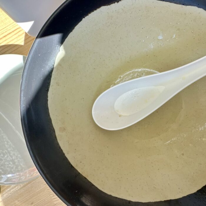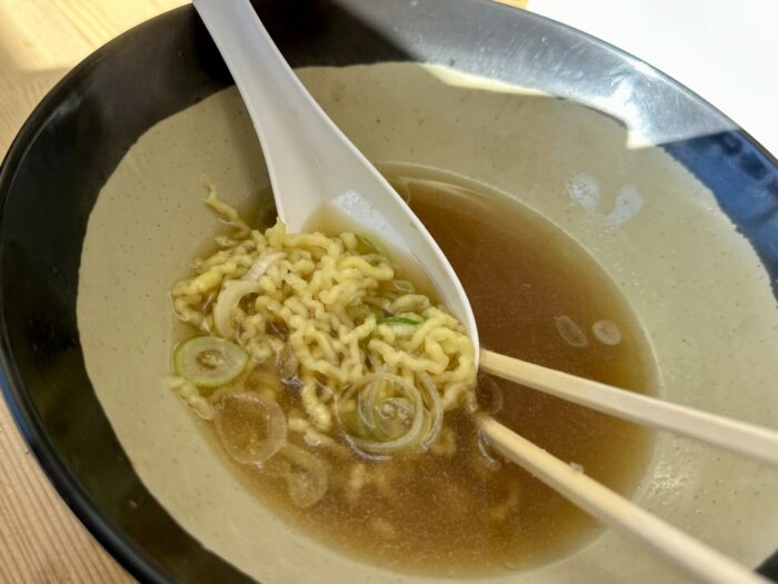 丁寧に出汁とってる感じの煮干しスープ、やや甘めの仕立てで朝から飲むにもビダハマリする味わい