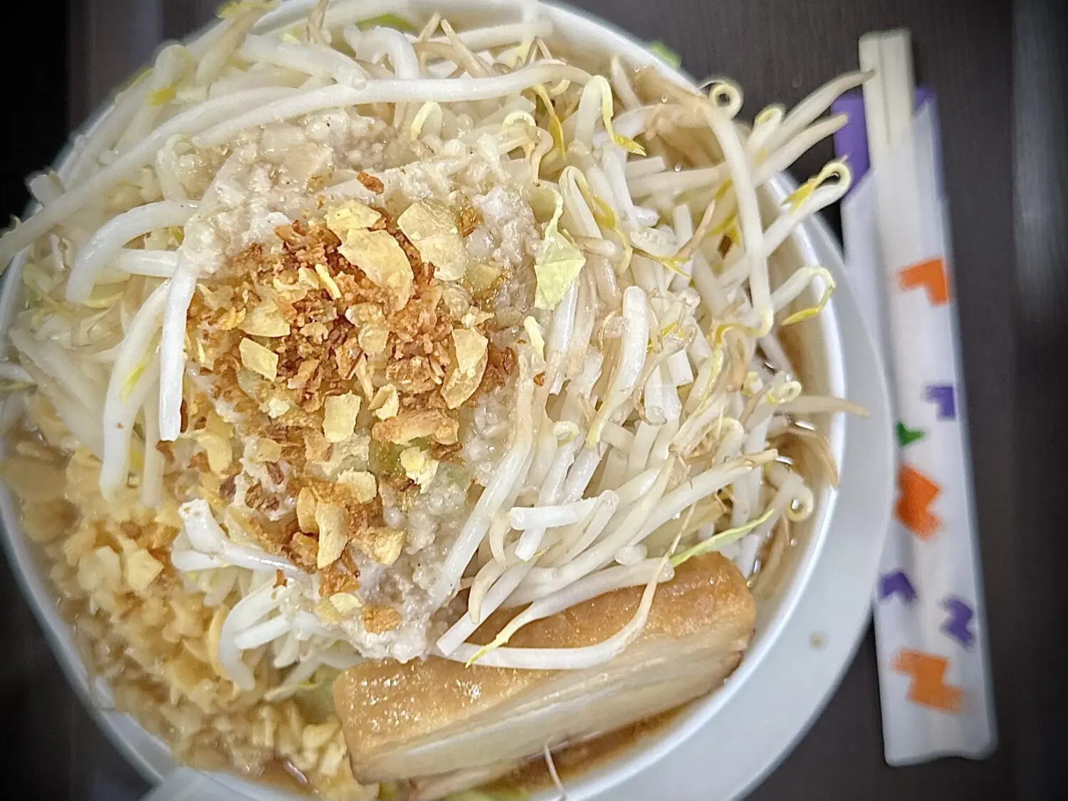 大館ヤマモリ【バク豚696】で「麺350gブタ旨辛改ヤサイマシマシアブラマシニンニクマシ」